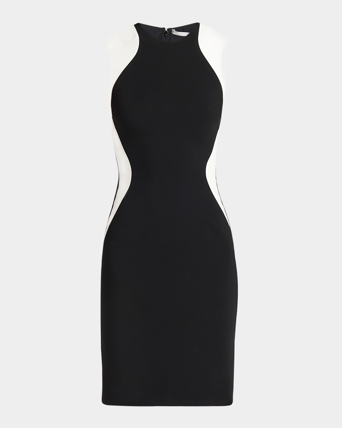 Stella McCartney "Miracle" colorblock dress Jewel neckline Sleeveless Mini length Sheath silhouette Back zip Viscose/elastane Dry clean Made in Italy