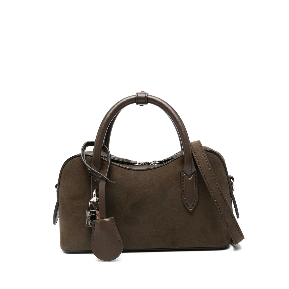dark brown top handle detachable shoulder strap padlock detail zip fastening silver-tone hardware