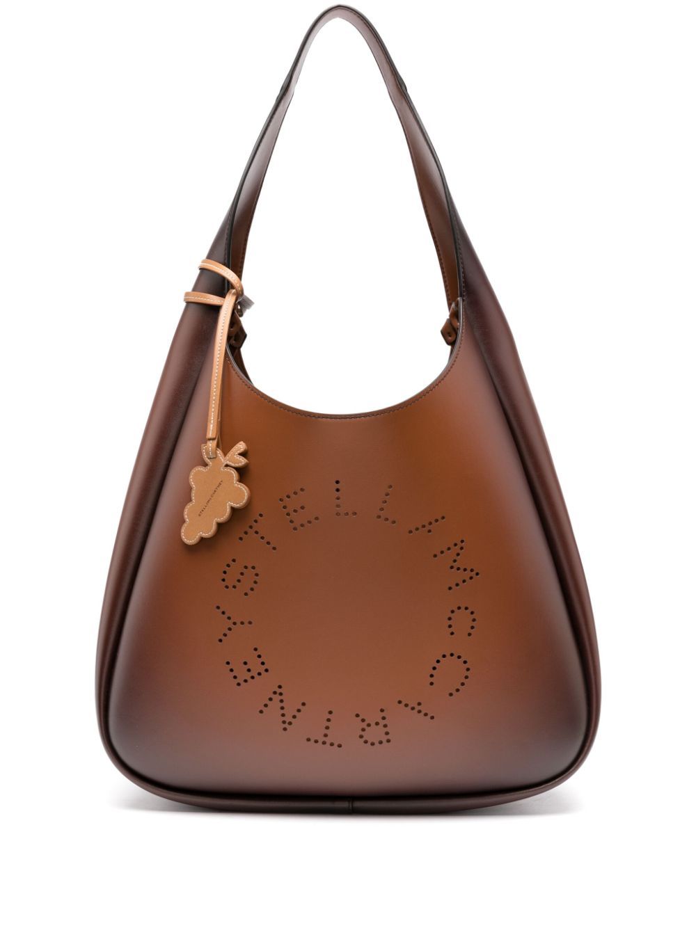 cognac brown faux leather aged effect magnetic fastening single flat top handle perforated logo detail detachable grapefruit-shape logo pendant main compartment internal patch pocket unlined We've partnered with Good On You - an independent agency that rates how brands perform in relation to their impact on the planet, people and animals, with a multi-criteria rating simplified to a five points scale. In order to be awarded our conscious label, larger brands need to score a minimum of four out of five ('Good'), while smaller brands must score at least three out of five ('It's a start'). This item comes from a brand rated four out of five ('Good') by Good on You at the time it was added on FARFETCH. Please note, this is a brand-level rating and does not guarantee that this product is made with conscious materials. Learn more about what makes a product Conscious on our Conscious Criteria page