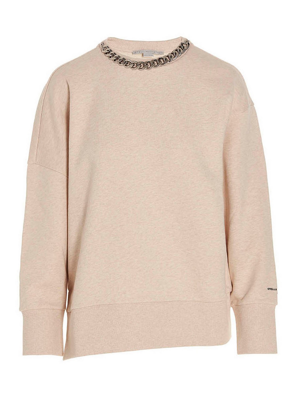 Sweatshirt en coton à chaîne Falabella avec chaîne amovible au niveau du cou, col rond, manches longues à revers et fente latérale.