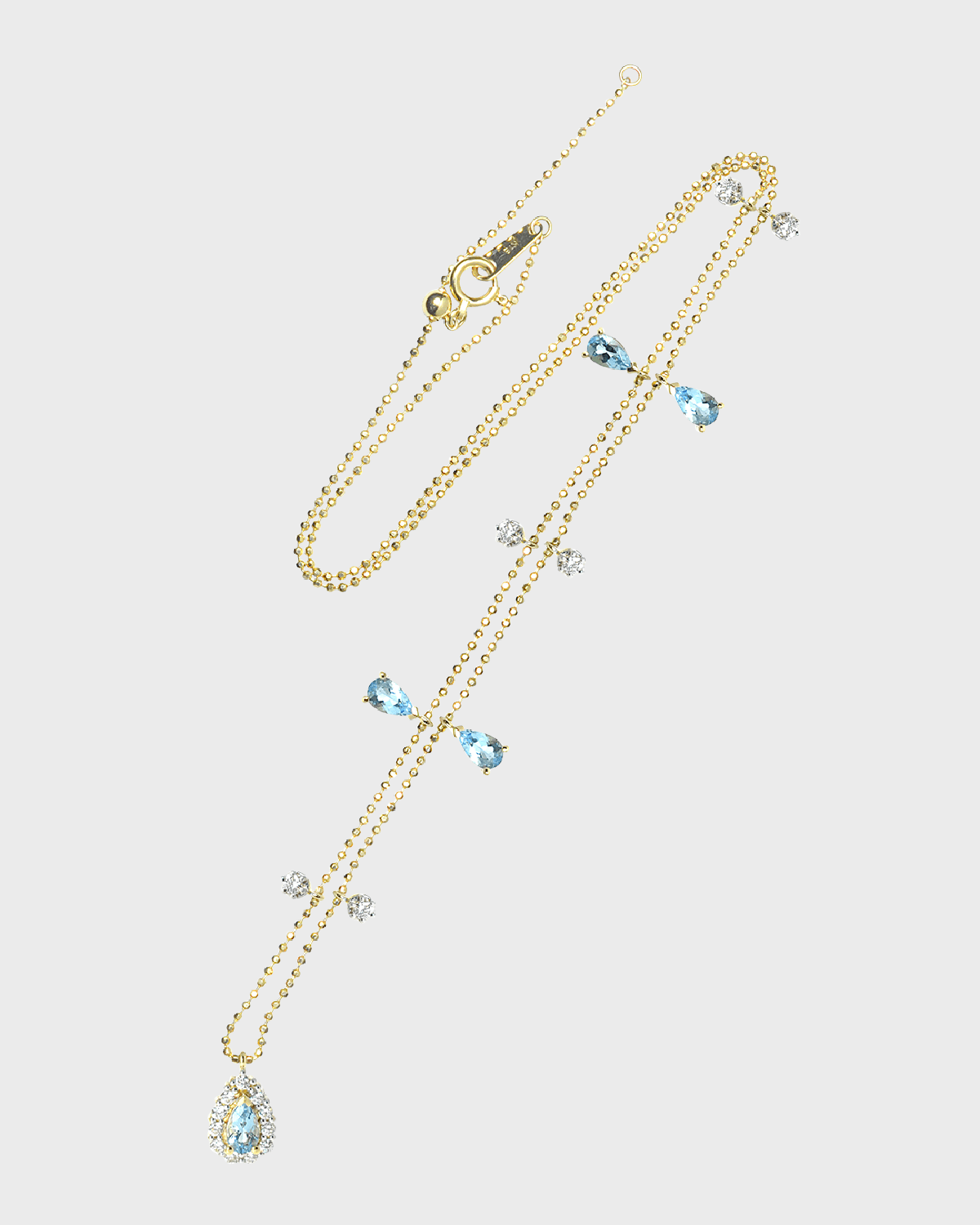 Stevie Wren signature charm necklace Approx. 1618"L 18karat yellow gold Pearcut turquoise accented by round, brilliantcut diamonds Total diamond carat weight: 0.35 Total turquoise carat weight: 0.9 Adjustable lobster clasp Made in USA from imported materials