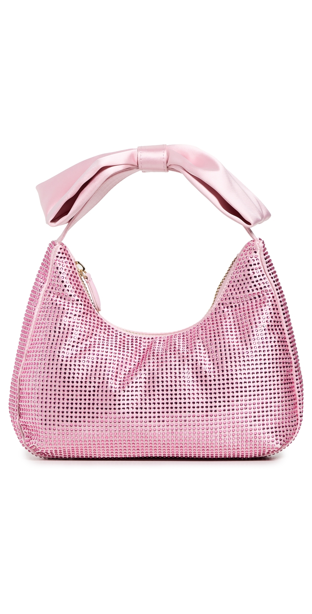 Satin. Allover rhinestone embellishments. Decorative bow handle. Zip at top. Lining: Satin. Weight: 10oz / 0.28kg. Imported, China. Measurements: Height: 5.5in / 14cm Length: 10.25in / 26cm Depth: 2.25in / 6cm Strap drop: 4.75in / 12cm