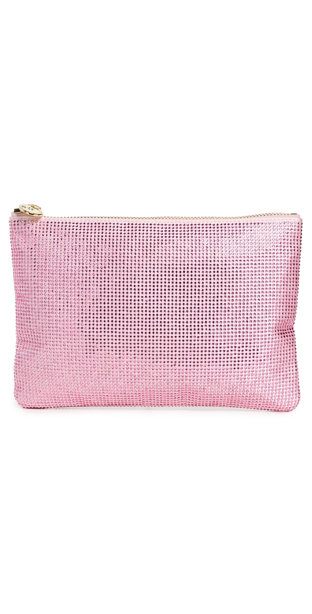 Satin. Allover rhinestone embellishments. Zip at top. Lining: Satin. Weight: 9oz / 0.26kg. Imported, China. Measurements: Height: 7.75in / 20cm Length: 11.5in / 29cm Depth: 0.75in / 2cm