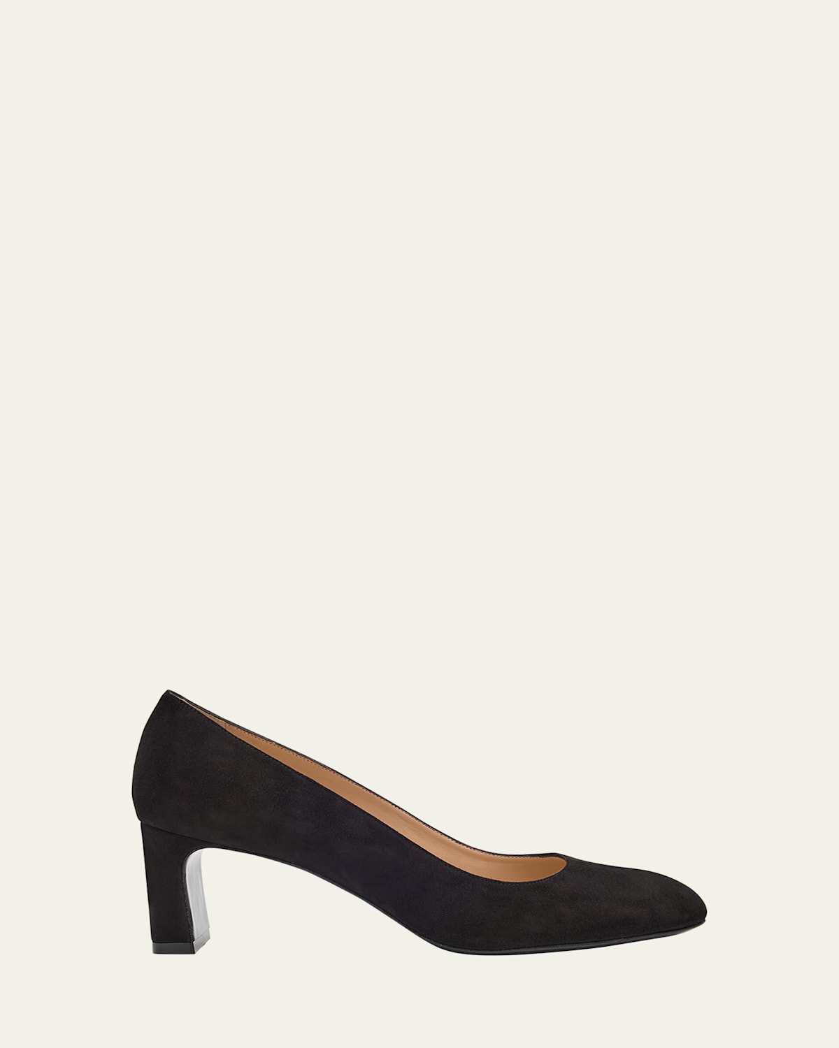Stuart Weitzman "Babette" pumps in supple calf suede 2.36 in / 60 mm block heel Round toe Slipon style Leather lining and outsole Professional cleaning recommended Made in Spain
