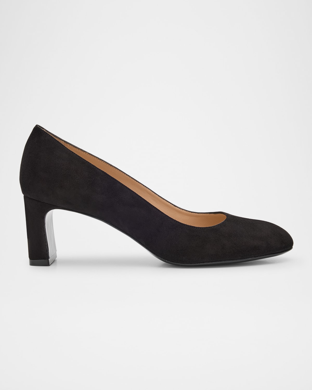 Stuart Weitzman "Babette" pumps in supple calf suede 2.36 in / 60 mm block heel Round toe Slipon style Leather lining and outsole Professional cleaning recommended Made in Spain