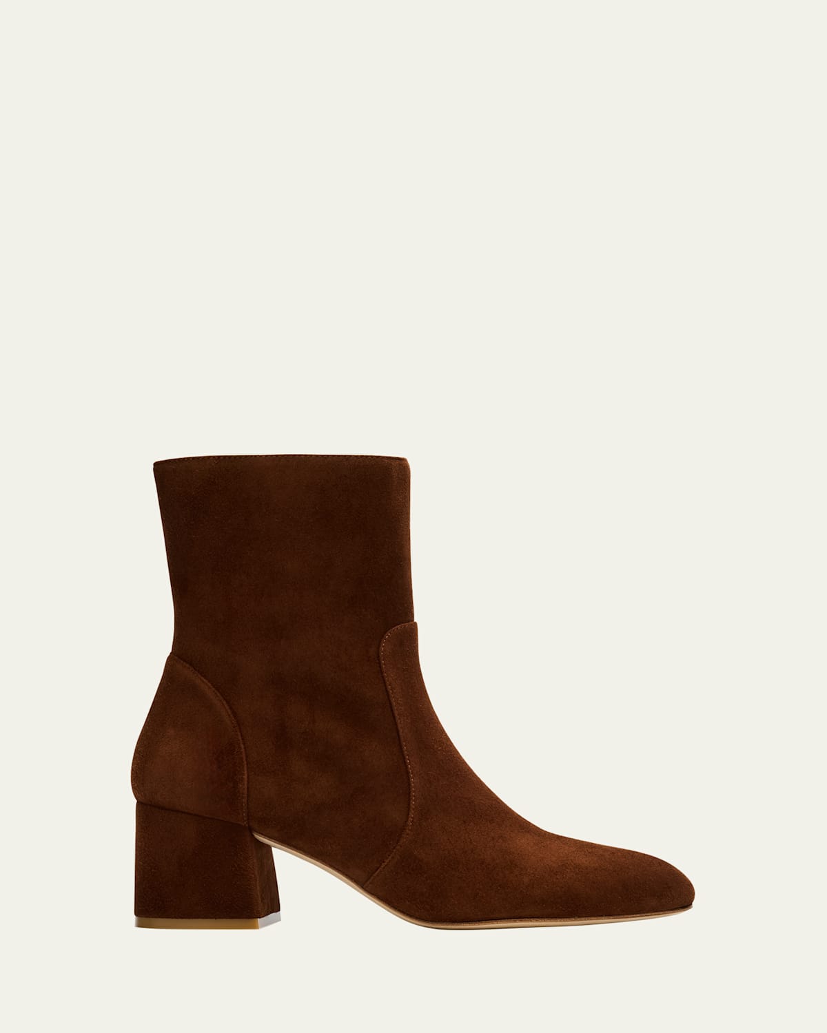 Stuart Weitzman "Flareblock" booties in goat leather 2.36 in / 60 mm block heel Almond toe Zip closure for easy on and off Leather outsole Made in Spain