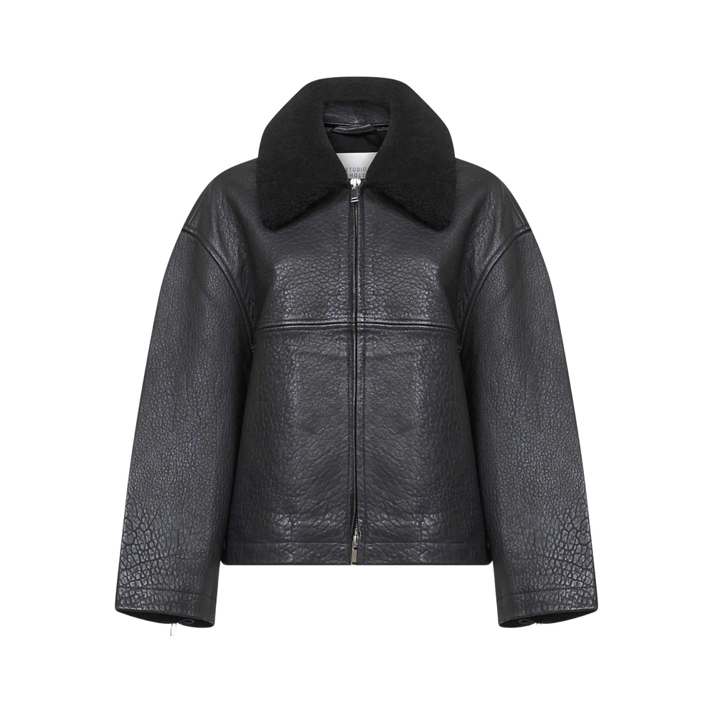black shearling collar zip closure long sleeves zipped cuffs side pockets