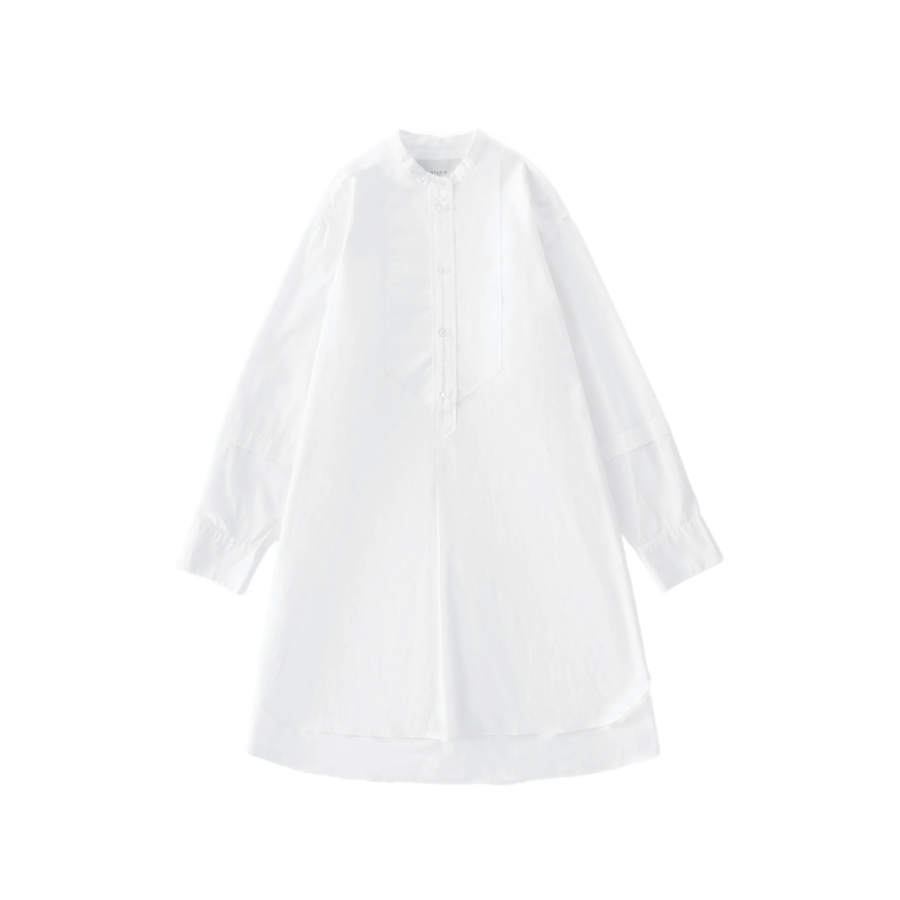 white buttoned cuffs front half-placket box pleat fishtail hem