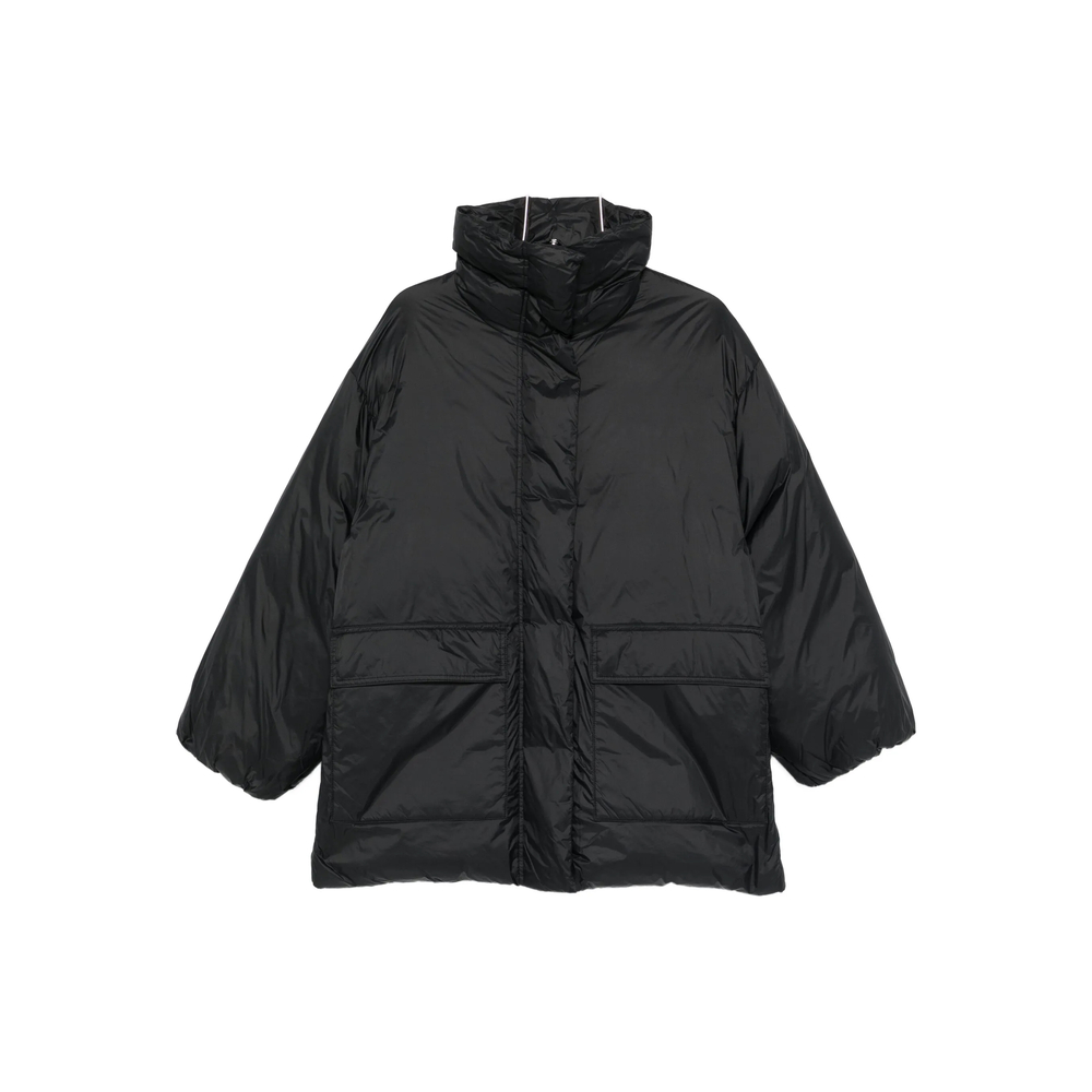 black high neck front pockets front button fastening wide sleeves quilted effect