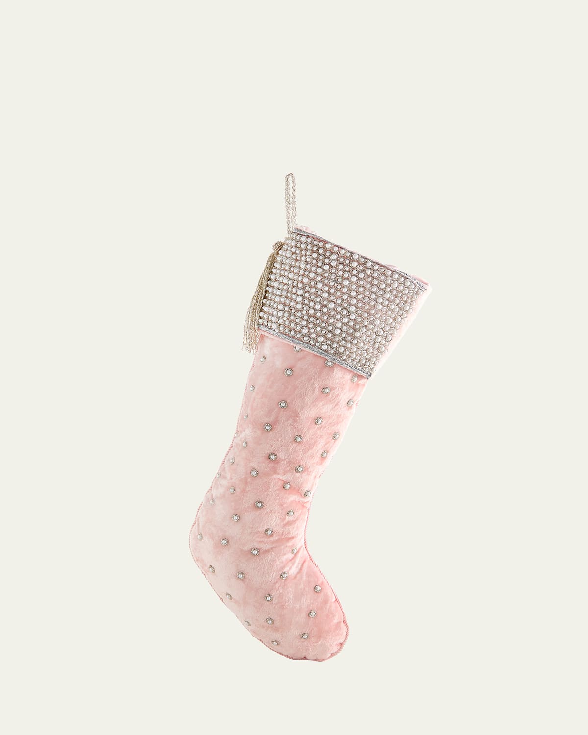 Velvet Christmas stocking embroidered with metallic thread and faux pearl accents Made of plastic, metallic fibers, and rayon Approx. 23"L x 7.0"W Spot clean Imported