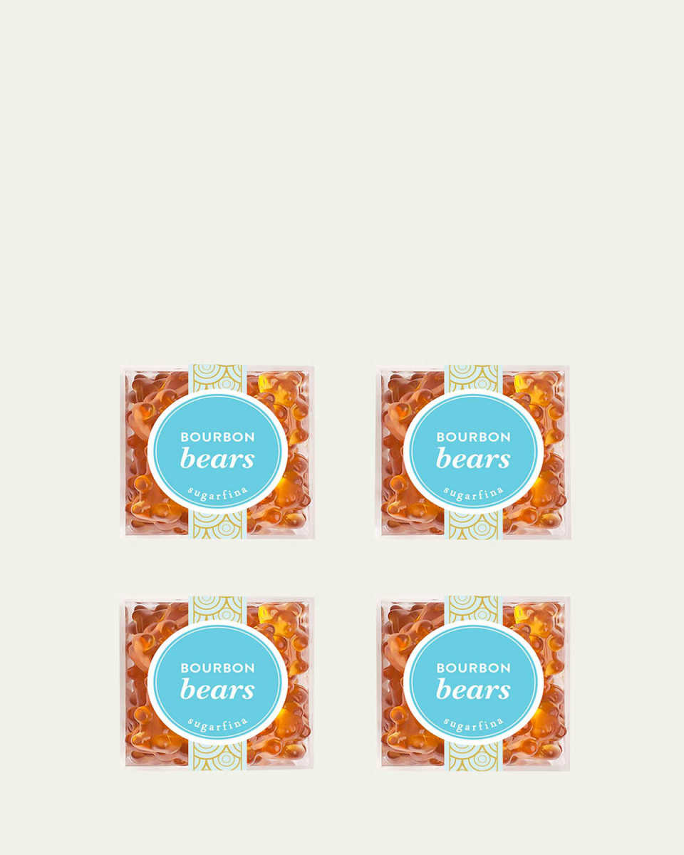 Made with singlebarrel bourbon, these dapper bourbon gummy bears have a sweet kick of Kentucky's finest! A Sugarfina exclusive. Includes four small cubes. Each approx. 2.18"Sq. Nonalcoholic. Made in Germany.