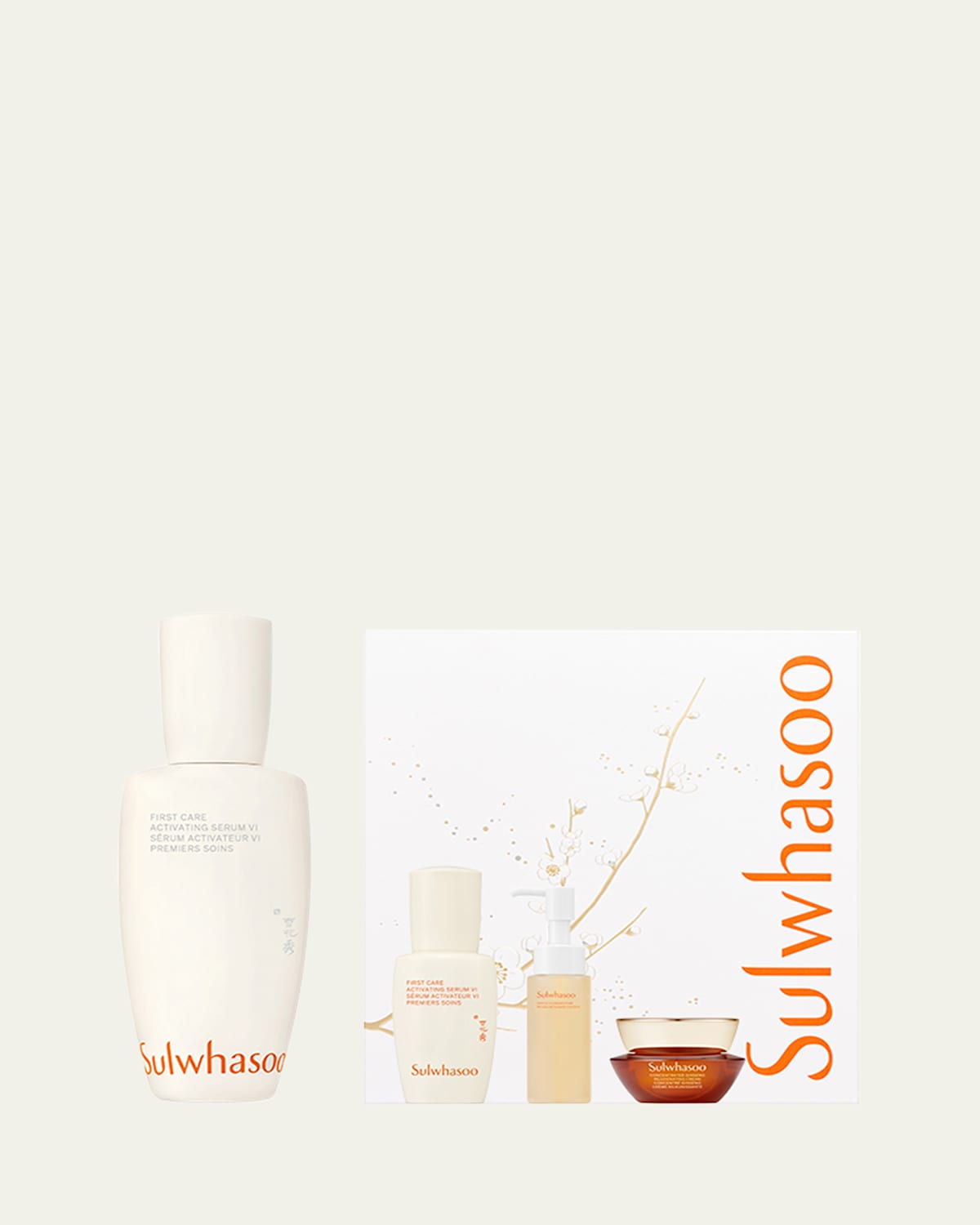 Gentle Cleansing Foam First Care Activating Serum (2 sizes) Concentrated Ginseng Rejuvenating Cream Key Ingredients: 500hour Aged Ginseng Extract (AKA Lymphanax™)*: A rare, fermented ginseng extract (only 1g extracted per 1000g of ginseng) to support a healthy skin barrier. *Ginseng that has been fermented for the optimal period of 500 hours (20 days) to maximize Saponin G17, a key compound that strengthens the skin barrier. Ginseng Peptide™: A potent 6peptide blend that helps support the look of skin firmness and elasticity, synergistically enhancing the benefits of Korean Ginseng Actives. Hydra Capture Complex: A complex of 4 herbal ingredients to help skin stay hydrated. How To Use: Cleanse with Gentle Cleansing Foam. Apply First Care Activating Serum to damp skin. Finish with Concentrated Ginseng Rejuvenating Cream to lock in moisture and plumplooking skin.