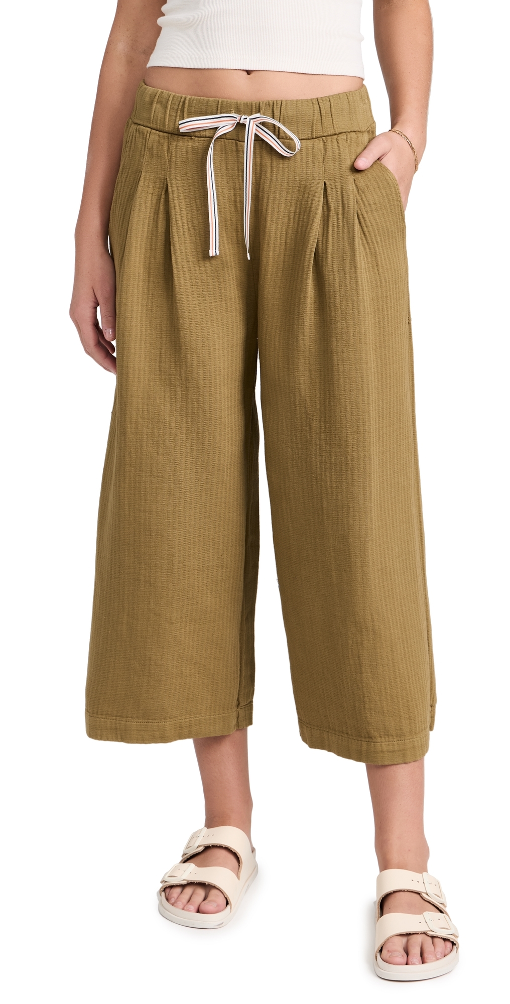 Fabric: Lightweight, non-stretch weave. Creased seams. Covered elastic waist with drawstring. Slant hip pockets. Shell: 100% cotton. Hand wash. Made in the USA. Measurements: Measurements from size S Rise: 11.75in / 30cm Inseam: 20.75in / 53cm Leg opening: 25.25in / 64cm