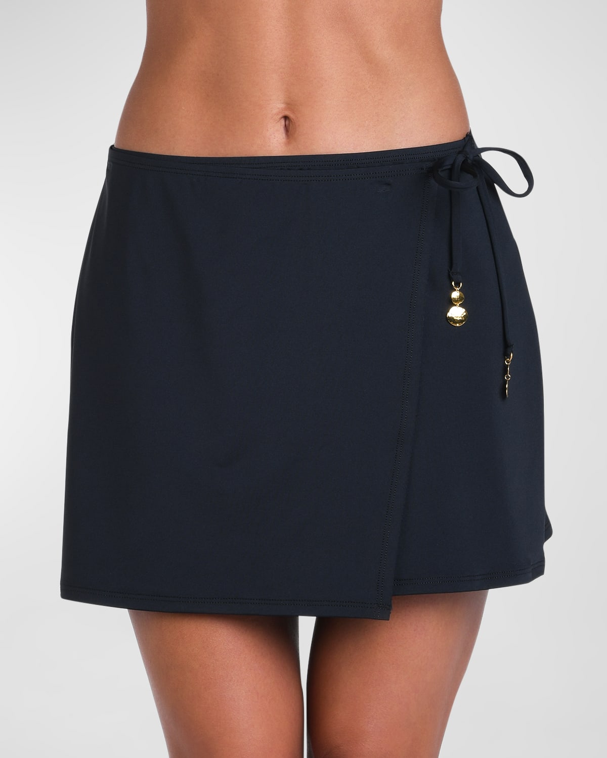 Sunshine 79 solid skirt coverup High rise Hem falls above the knee Wrap silhouette Selftie closure Nylon/polyamide/elastane Hand wash Imported