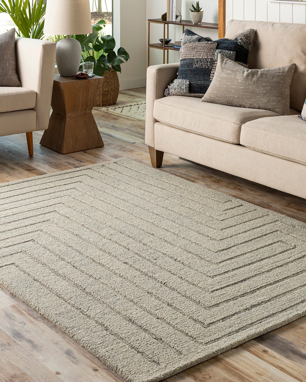 Handcrafted rug features durable and modern construction We recommend use of a rug pad (not included) Made of handtufted wool Size is approximate Low pile Thickness: 0.39" Item Weight (Lbs.): 80.0 Spot clean Imported