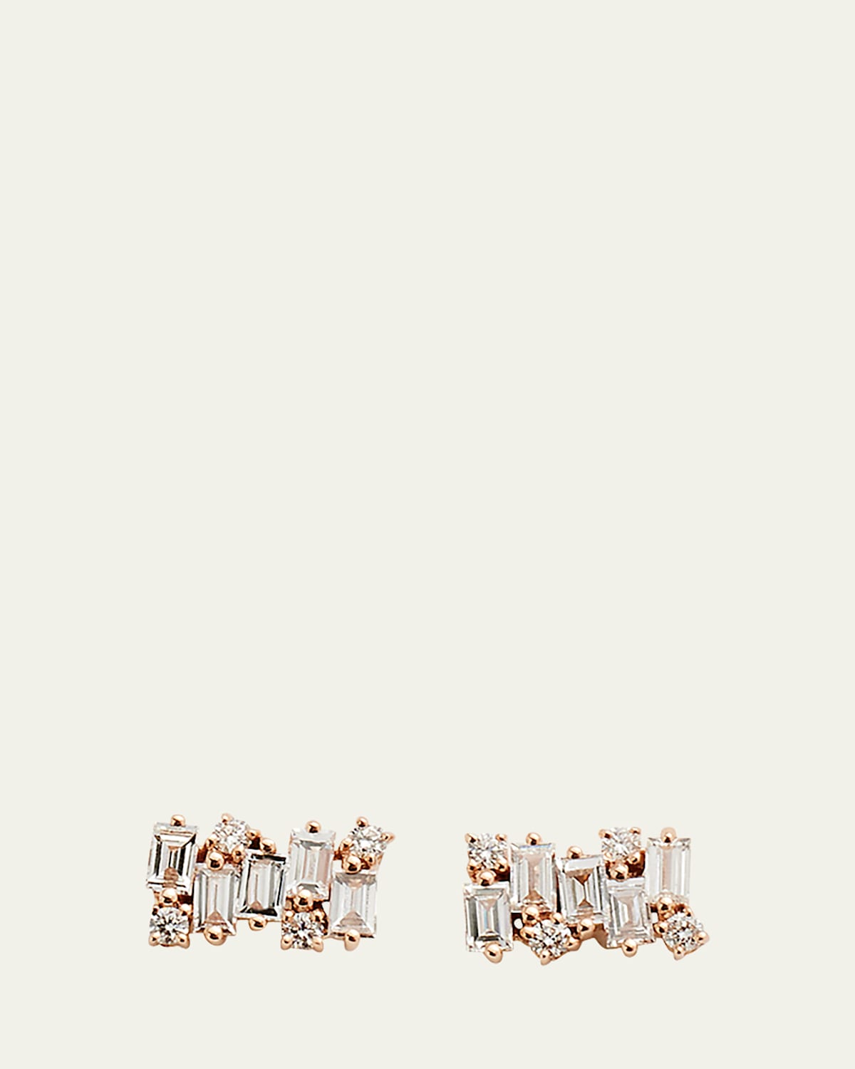 Suzanne Kalan stud earrings Approx. 8x5mm 18karat rose gold Baguette and round white diamonds in signature fireworks setting Total diamond carat weight: 0.50 For pierced ears Butterfly backs Made in USA