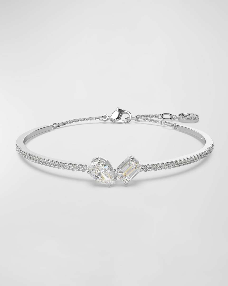 SWAROVSKI bangle bracelet Rhodiumplated metal Pavé crystals 1 pearcut Swarovski Zirconia 1 octagoncut Swarovski Zirconia Adjustable length Lobster clasp Imported