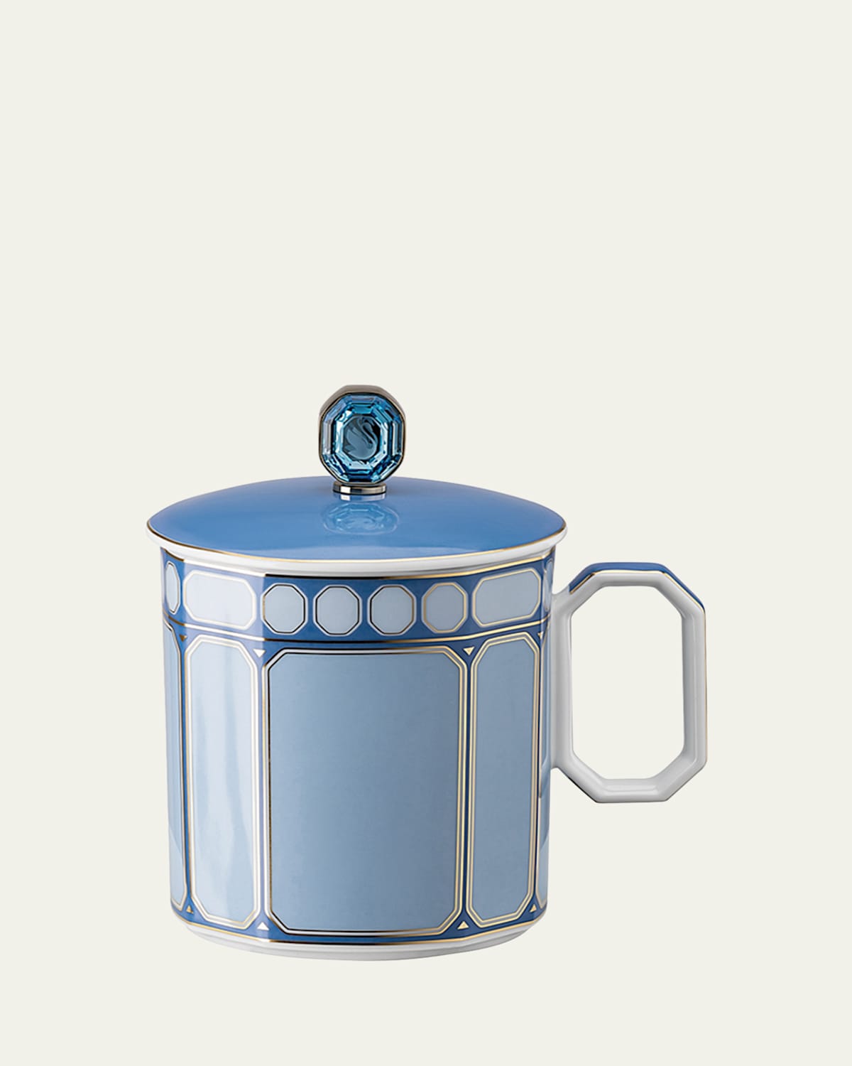 Turn teatime into an art with this mug inspired by the Wiener Werkstätte art movement. Designed in collaboration with porcelain brand Rosenthal, it marries clean lines with playful features, including Swarovski's signature octagon in a color pop blue motif, a stylish handle, and a crystaltopped lid. Crafted of porcelain with Swarovski® crystals Approx. 3.3"Dia. x 4.25"T Capacity, 13 oz. Item Weight: 1.5 lbs Hand wash Made in Germany