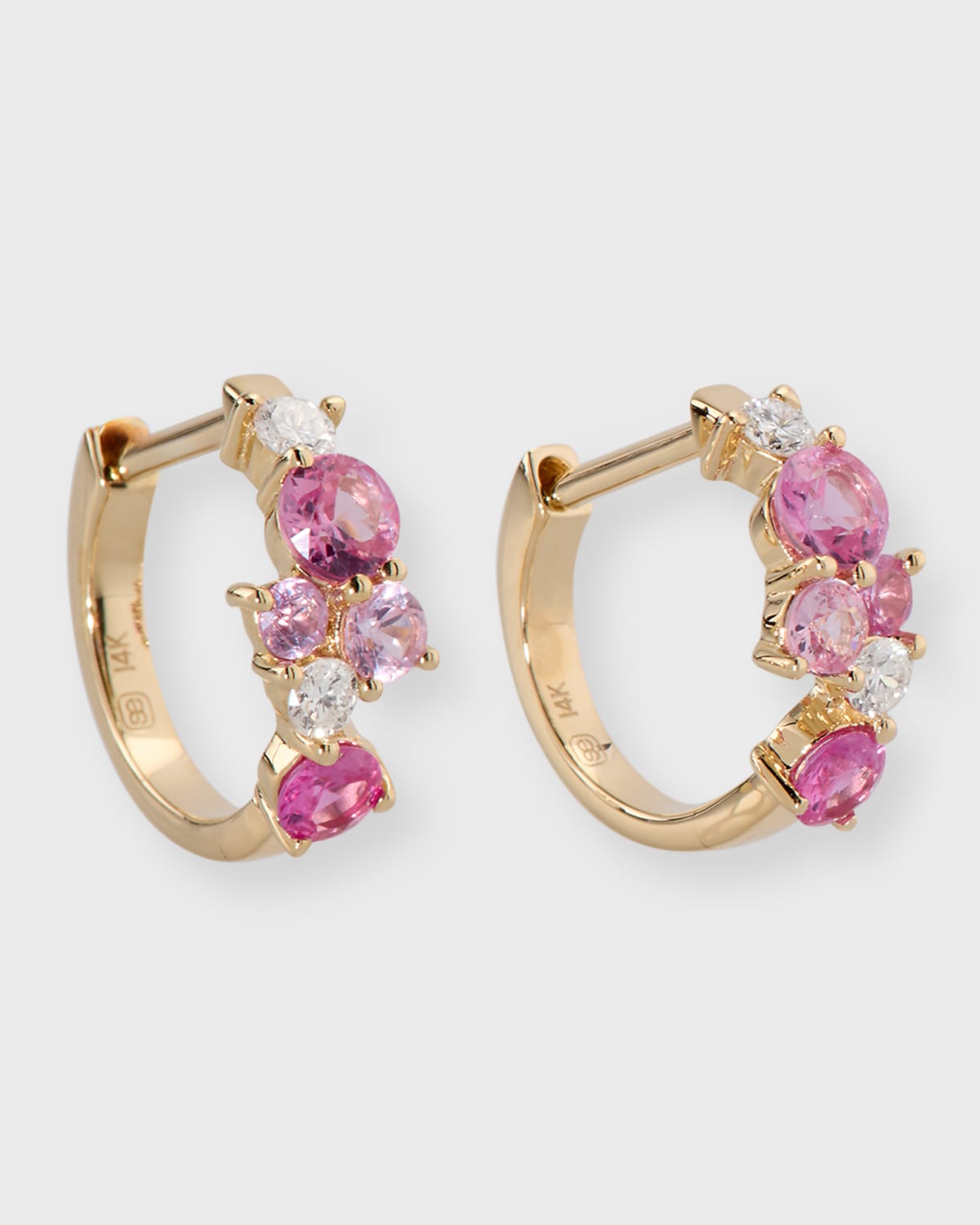 14k Diamond and Pink Sapphire Huggie Earrings