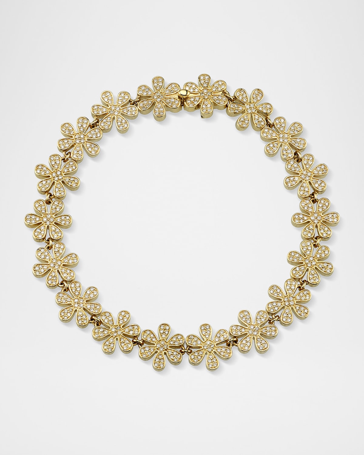 Cute and glamorous, this Sydney Evan bracelet, designed with a daisy pattern, is dripping with brilliantcut diamonds. Polished 14karat yellow gold 612 pavé colorless HI diamonds Diamond total carat weight: 1.6524 Hidden closure Imported
