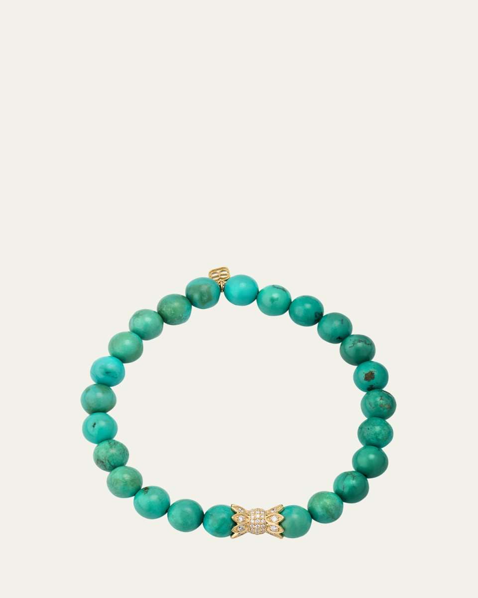 14K Yellow Gold Diamond Marquise Eye Candy Wrapper Bead on Green Turquoise Bracelet