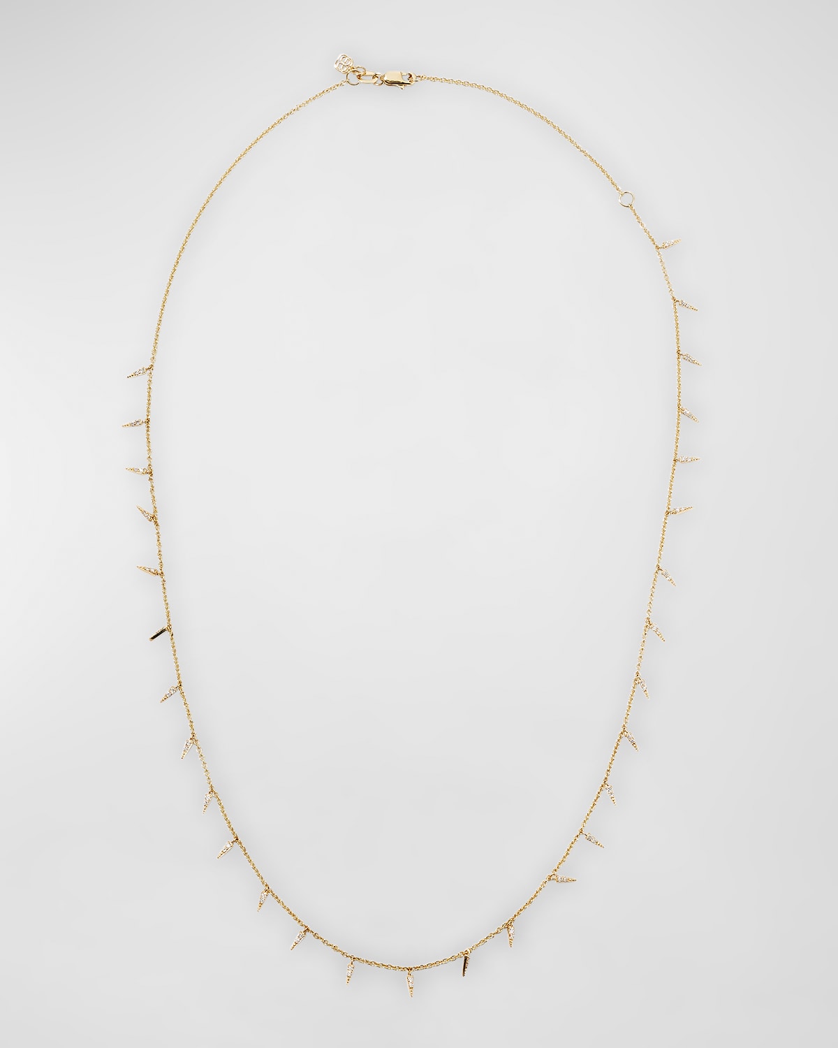 Fringe chain necklace by Sydney Evan. 14karat yellow gold. Dangling charms with pavé diamonds. 0.23 total diamond carat weight. Approx. 1618"L. Imported.