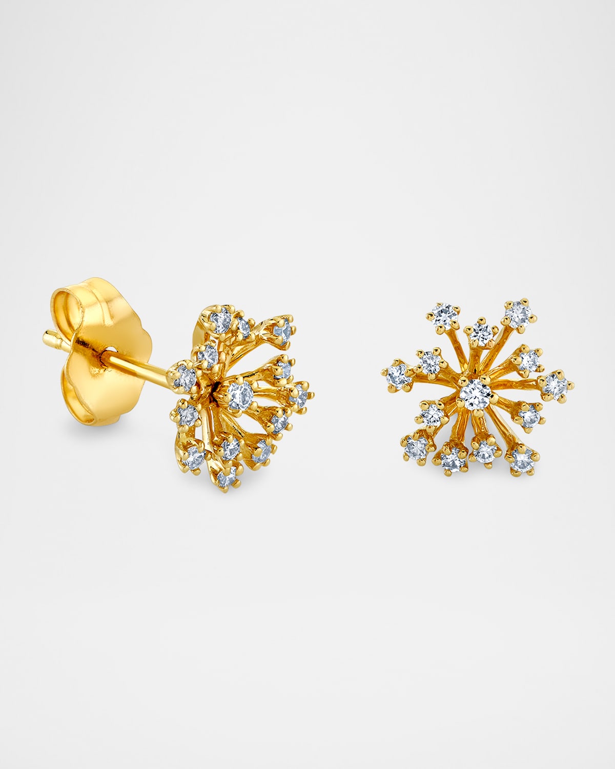 Reminiscent of a wild desert flower, these Sydney Evan stud earrings are crafted with a stemmed silhouette that showcases 28 brilliant diamonds. Polished 14karat yellow gold 28 HI colorless diamonds 0.173 total carat weight For pierced ears Imported