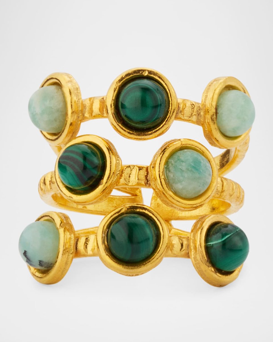 Sylvia Toledano cocktail ring 22karat goldplated brass Bezelset malachite and larimar stones Imported