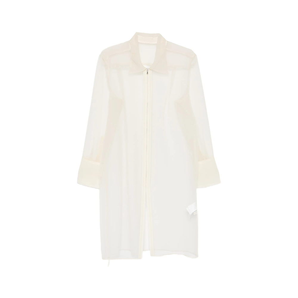cream sheer finish point collar zip fastening long sleeves cuffed sleeves