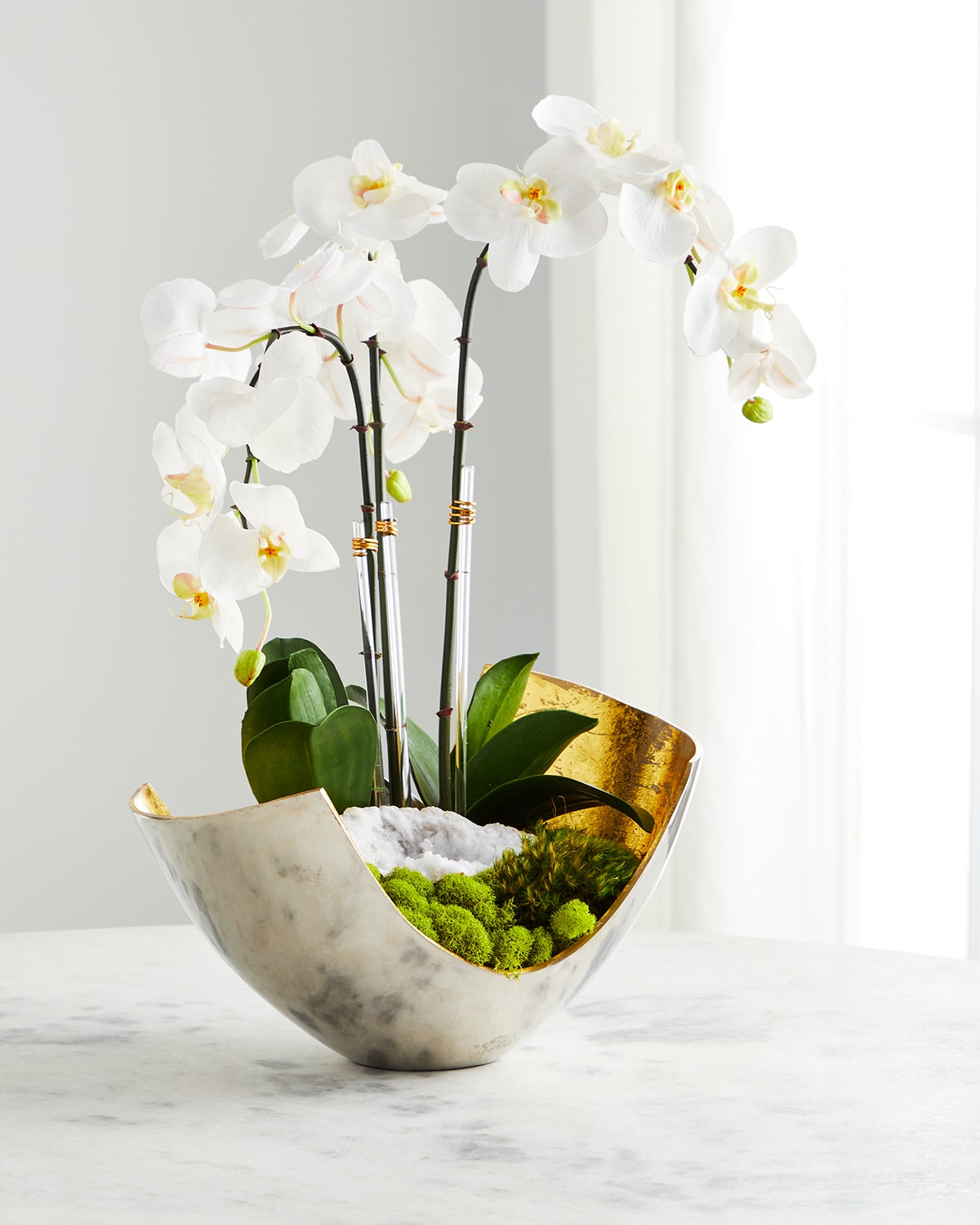 Orchids & Geode in Silver/Gold Scoop Container
