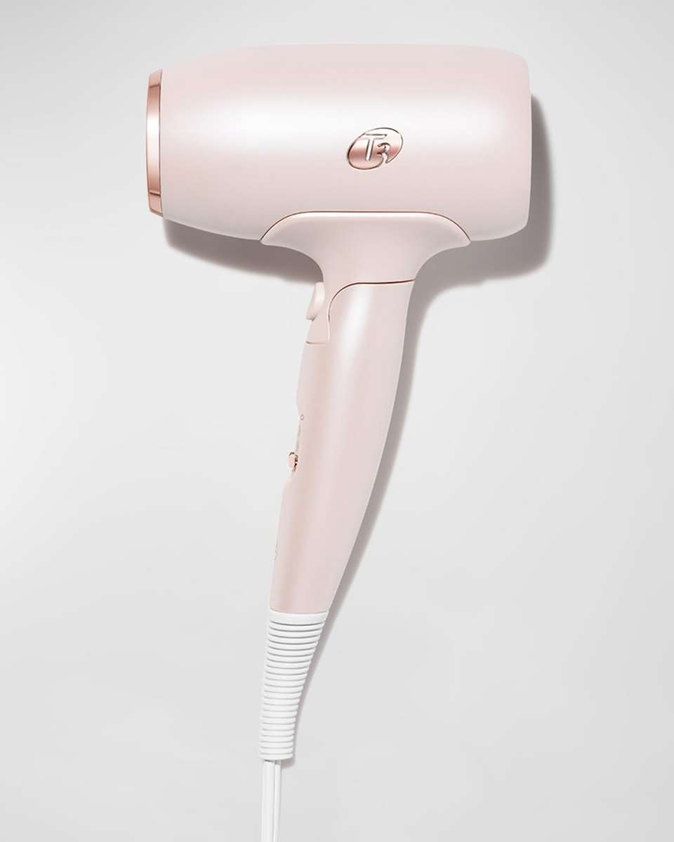 Customdesigned Fan: Organizes turbulent air into a uniform, gentle airstream T3 Ion Generator: Saturates airflow with negative ions to cancel static and smooth the cuticle Enhanced Airstream: Expertly dries large sections of hair - fast Features: T3 IonAir: Advanced airflow technology emits ionrich air to dry large sections of hair quickly and gently. Compact body: For easy storage in small spaces while traveling Folding Handle: Offers the same sturdiness and easygrip of fullsize dryers, while f