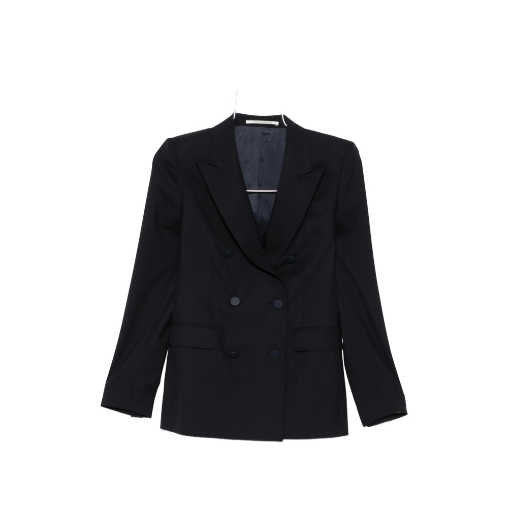 blue double-breasted lapel collar front button fastening long sleeves buttoned cuffs