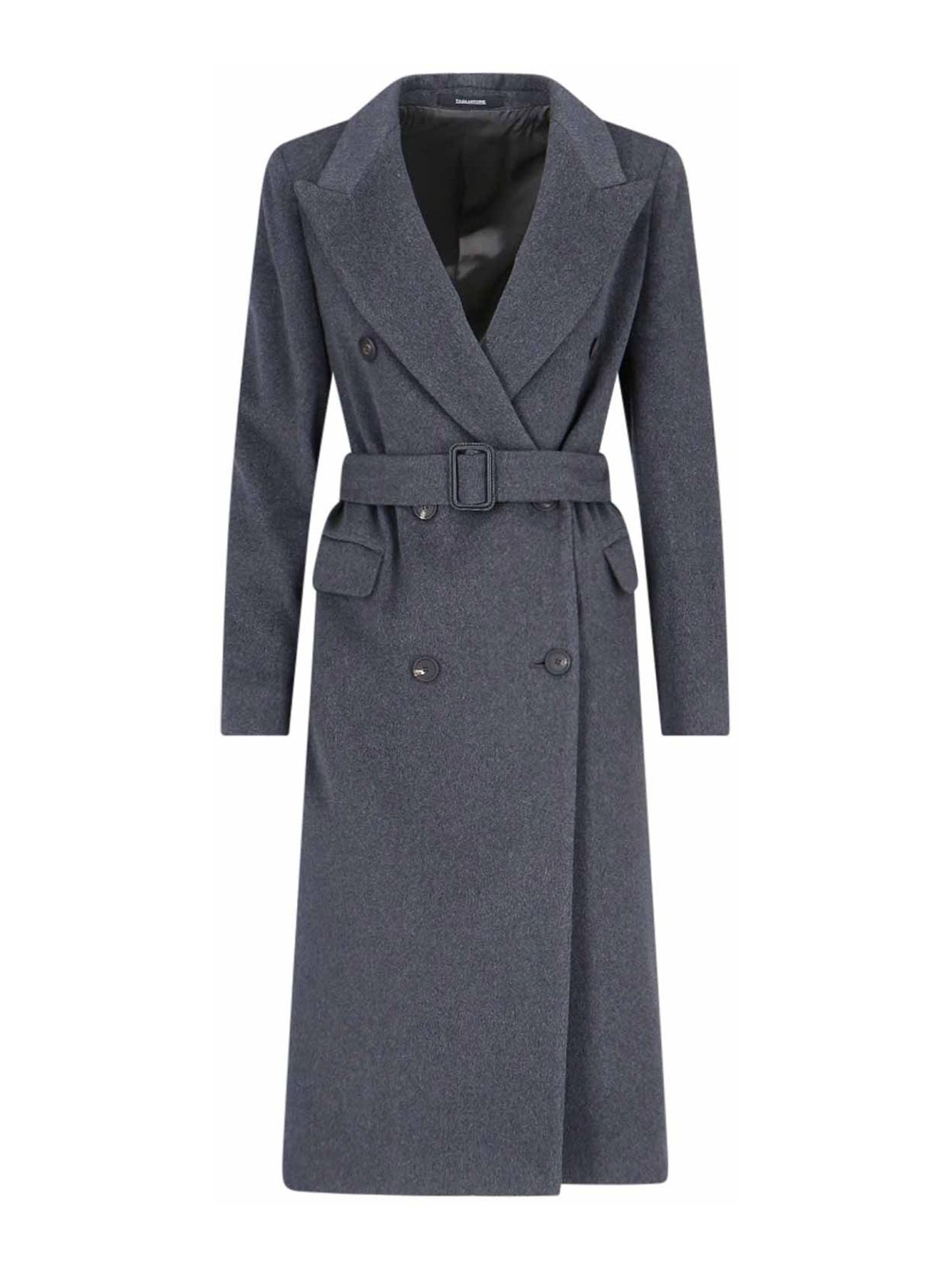 Manteau jole tagliatore à double boutonnage, fabriqué exclusivement à base de sucre, et revers en pointe grise, boutons, ceinture amovible, deux poches, rabat sur le devant, ventilation centrale, dos, ourlet droit