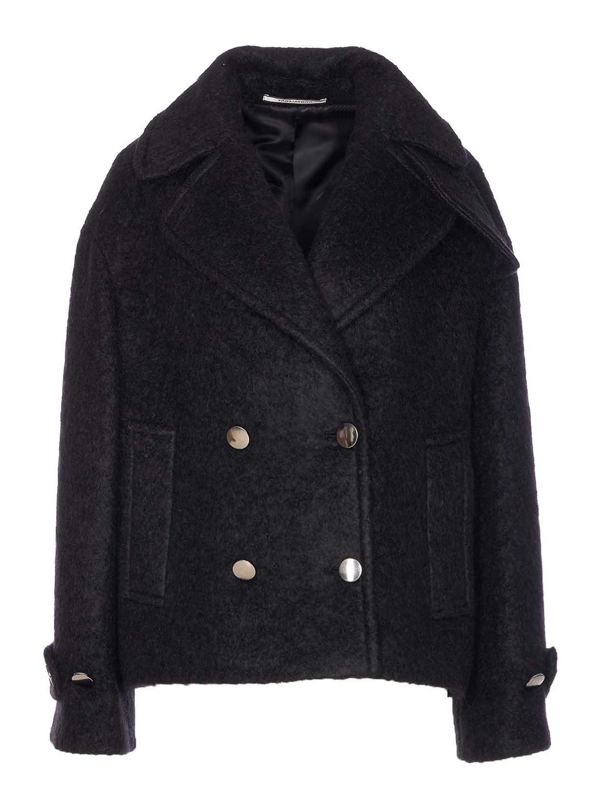 Veste Sheila noire Tagliatore, boutons à double boutonnage, manches longues, ceinture à la taille, poches latérales inversées Nom de la couleur du créateur: noir