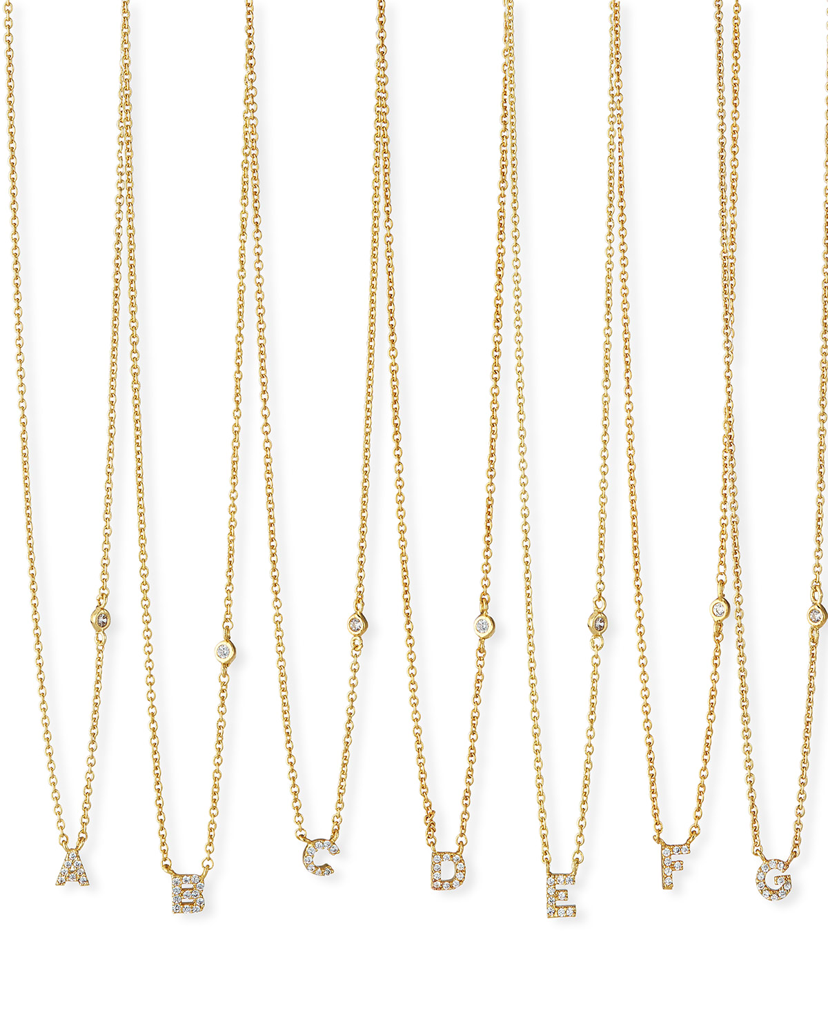 Cubic zirconia initial necklace from Tai. Polished yellow golden brass hardware. Integrated initial and eyeglass station. Your choice of capital letter. Adjustable; lobster clasp. Approx. 1618"L. Imported.