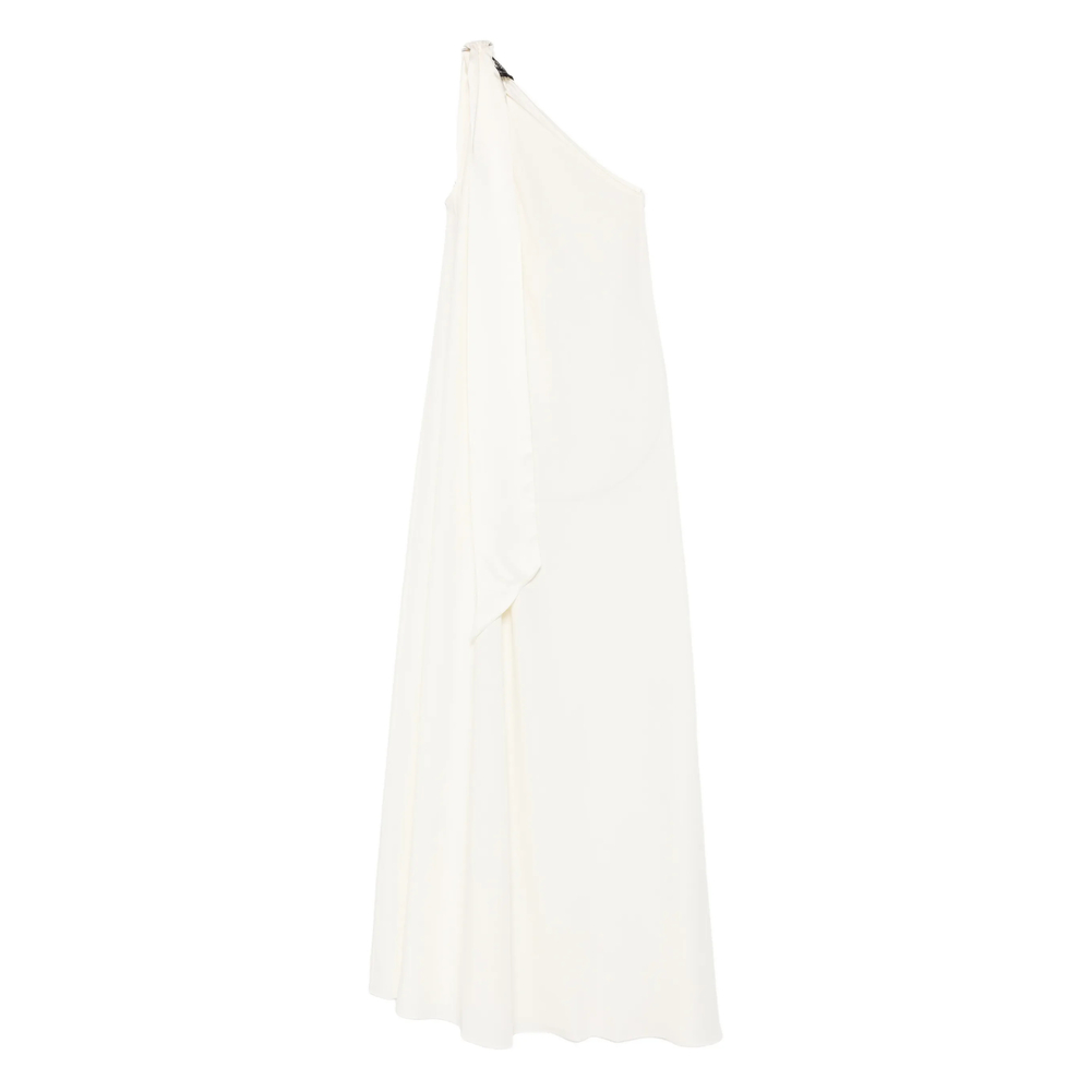 off-white one-shoulder design draped detail sleeveless long length concealed side zip fastening