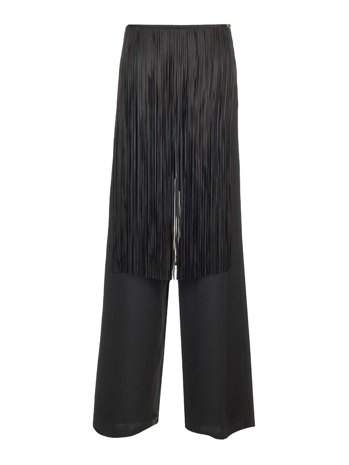 pantalon Oregon Palazzo de Taller Marmo en crêpe doux cady, entièrement orné de longues franges à la taille. Nom de la couleur du designer: noir