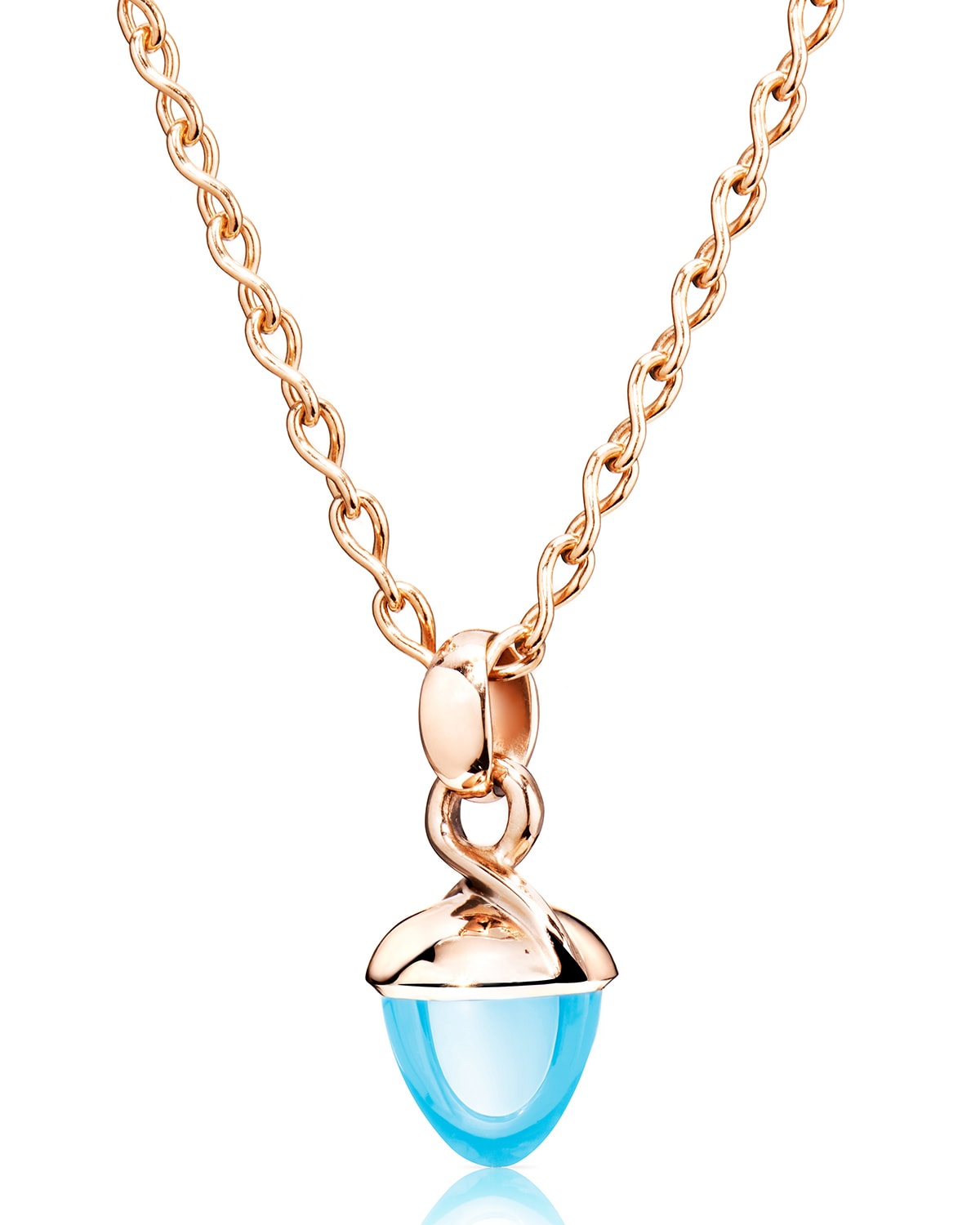 Tamara Comolli pendant from the MIKADO Collection. Polished 18karat rose gold hardware. Signature acornshaped pendant. One sky blue topaz cabochon. Pendant only; chain not included. 10.80 total topaz carat weight. Approx. 1"L (26mm).