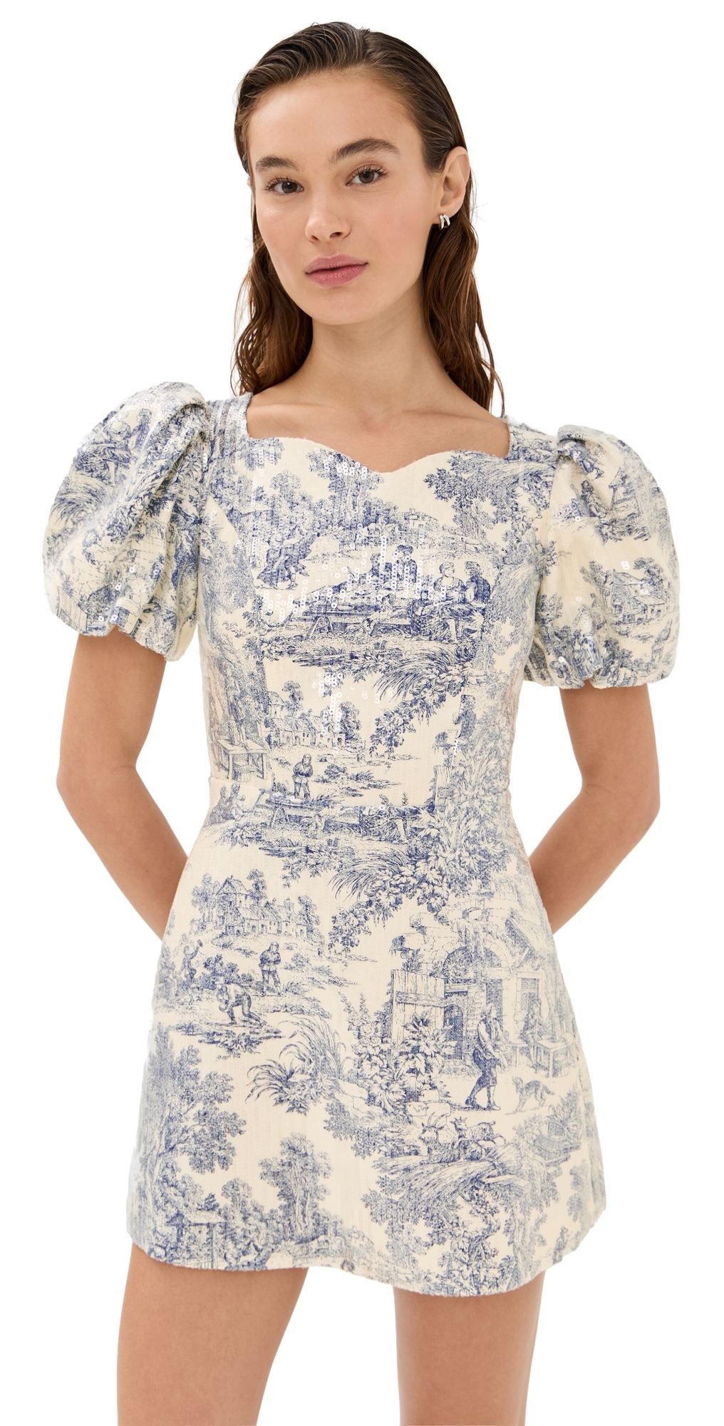 Helene Puff Sleeve Sequin Toile Dress Blue Toile Sequin