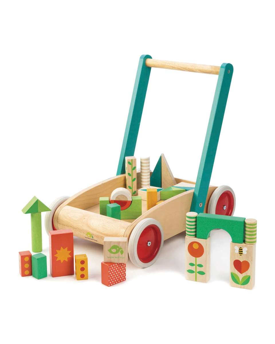 A modern version of the classic baby walker. Made from high quality wood, the handle is sturdy enough for toddlers to lean on. There are 29 garden themed wooden blocks for extra play and creative construction. Helps develop balance, strength, and encourages creative play. Self assembly required. Recommended for ages: 18m+. Imported.