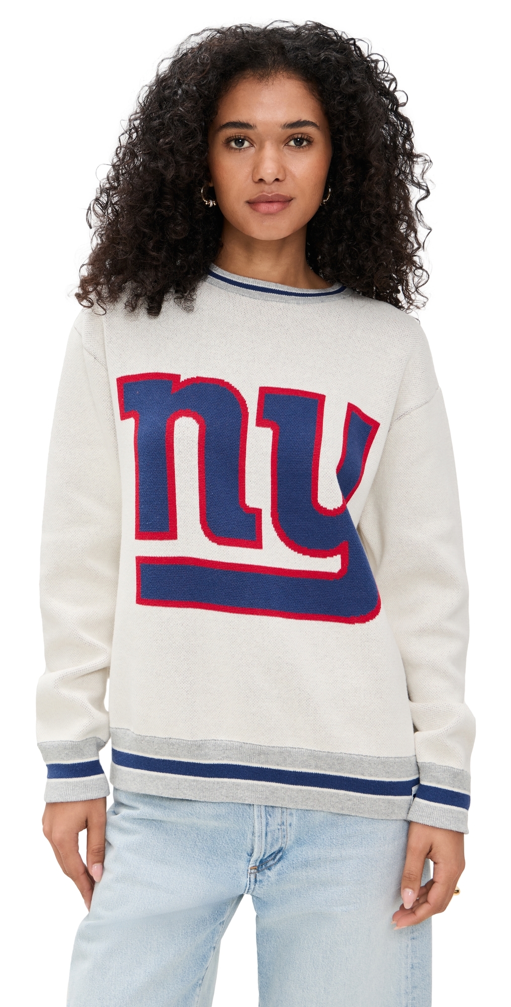 Fabric: Mid-weight, low-stretch knit. Sports logo at front. Ribbed stripe trim. Crew neck. Long sleeves with dropped shoulders. Shell: 92% cotton/8% nylon. Hand wash or dry clean. Imported, China. Measurements: Measurements from size XS Length: 25.5in / 65.0cm, from shoulder