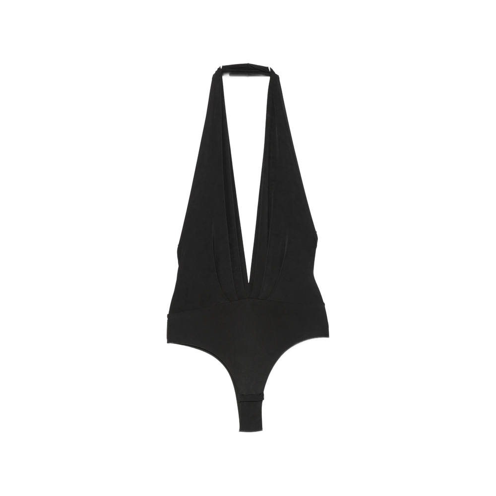 black halterneck plunging V-neck sleeveless gathered detailing press-stud fastening Just a reminder that this piece must be tried on over your own garments.