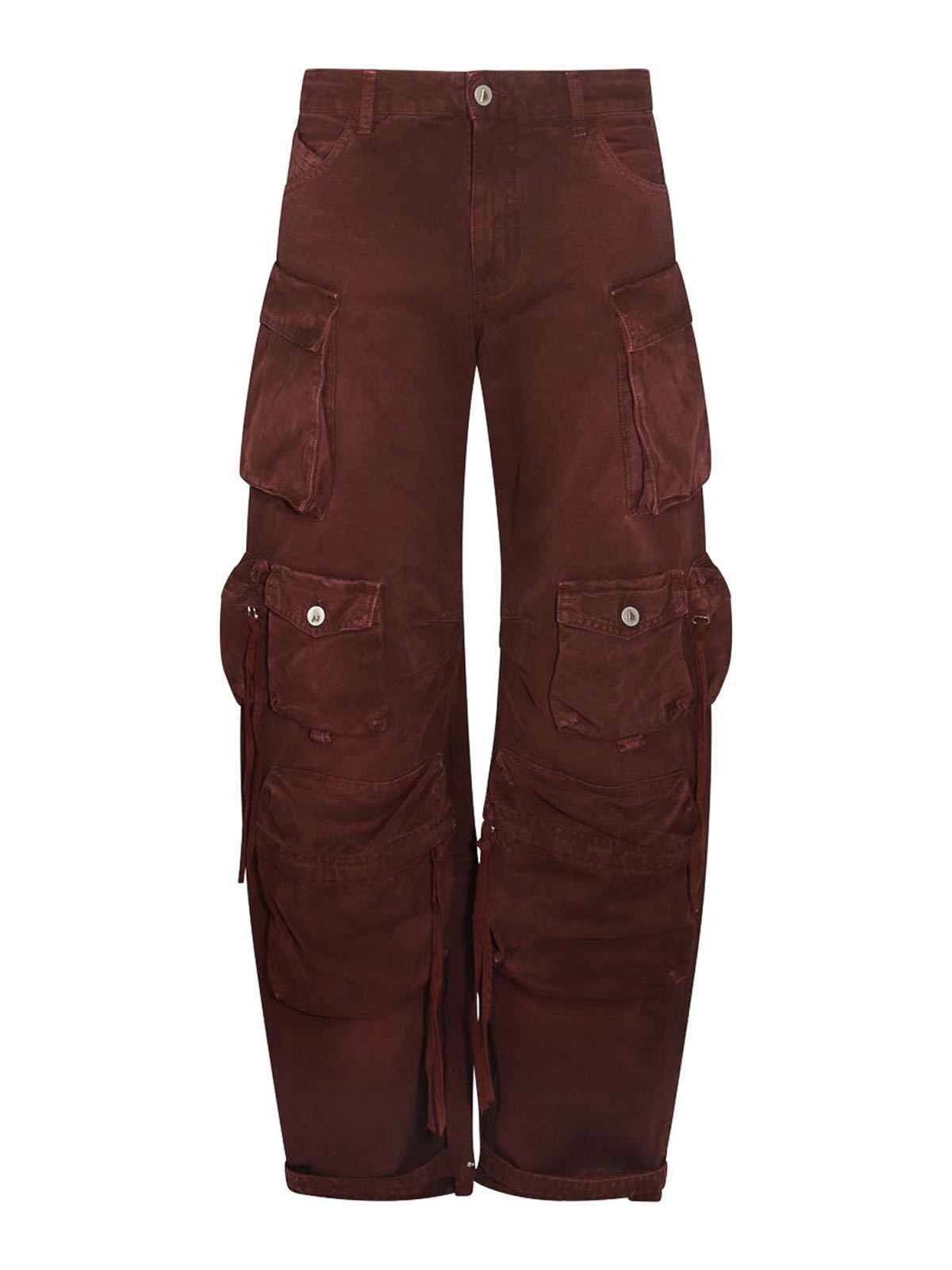 Jean en jean Browne de la marque Attico, doté d'une fermeture éclair et de boutons sur le devant, de plusieurs poches, de passants de ceinture et d'une grande tenue vestimentaire.