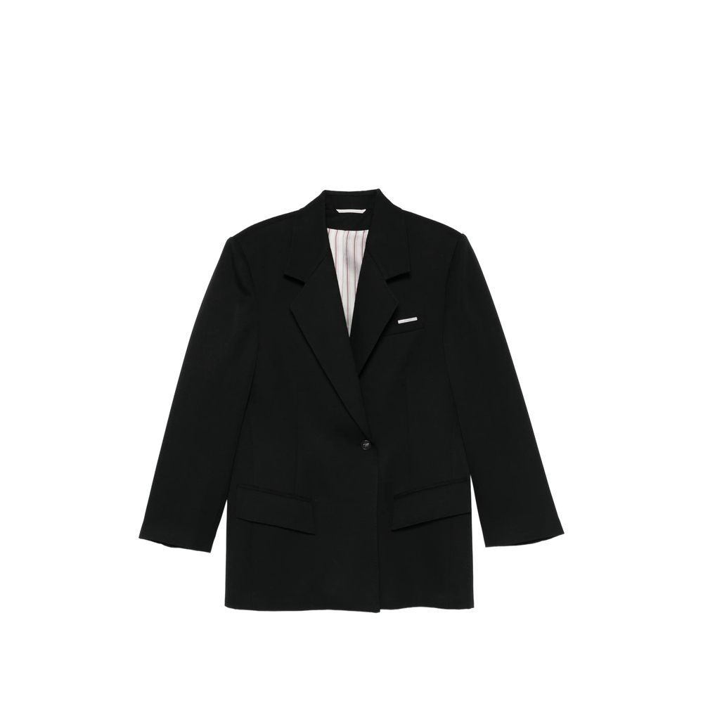 black notched lapels chest welt pocket front flap pockets single-breasted single button closure