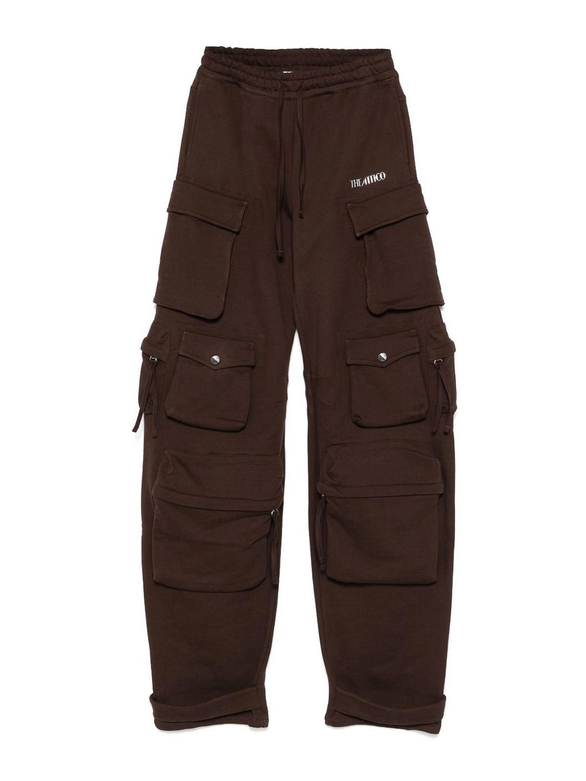 Ceinture élastiquée marron chocolat avec cordon de serrage, multiples poches cargo, logo caoutchouté, fermeture à bouton-pression, poignets