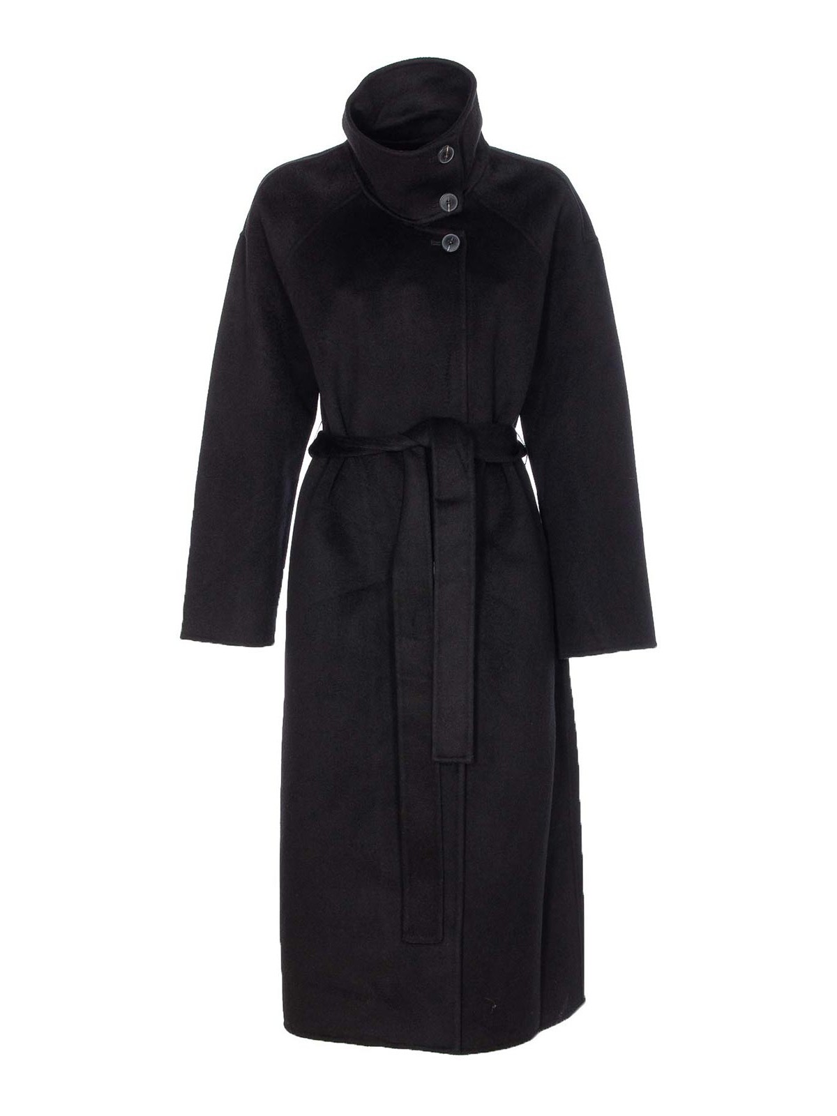 Manteau The Dynamis Studio Black Paris Boutons sur les manches longues, ceinture à la taille, poches fendues au dos Nom de la couleur du créateur: noir