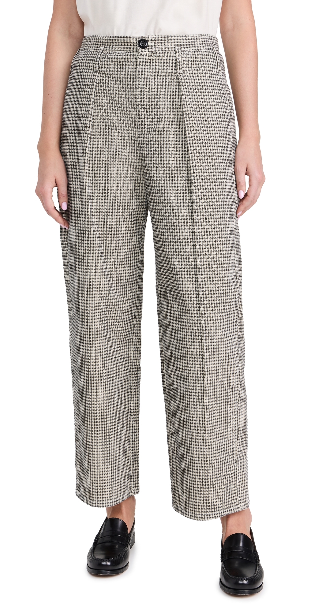 Fabric: Mid-weight stretch corduroy. Pleated front. Houndstooth pattern. Button closure and zip fly. On-seam side pockets and flap back pockets. Shell: 98% cotton/2% spandex. Dry clean. Imported, China. Measurements: Measurements from size 26 Rise: 11.75in / 30cm Inseam: 28in / 71cm Leg opening: 18in / 46cm