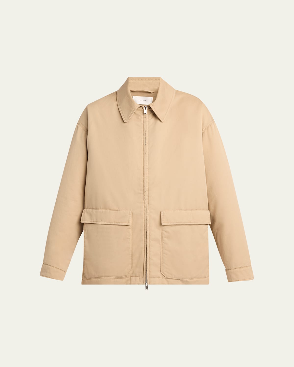 THE ROW "Aurelius" jacket in cotton and cashmere gabardine with buckled straps on the side waist Point collar; twoway zip front Long sleeves; button cuffs Hip flap pockets and slip pockets Loose fit Hem falls below the hip Cotton/cashmere/cotton Made in Italy