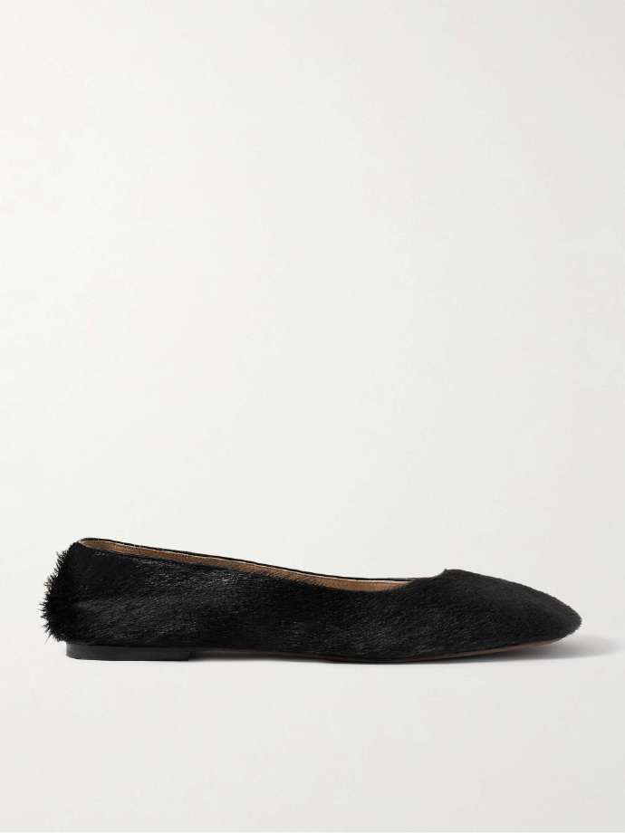 The Row's ability to make understated designs look incredibly chic and distinct is unparalleled. These flats are made from tactile calf hair and have square toes and slight heels. Wear yours with everything from dresses to tailoring.