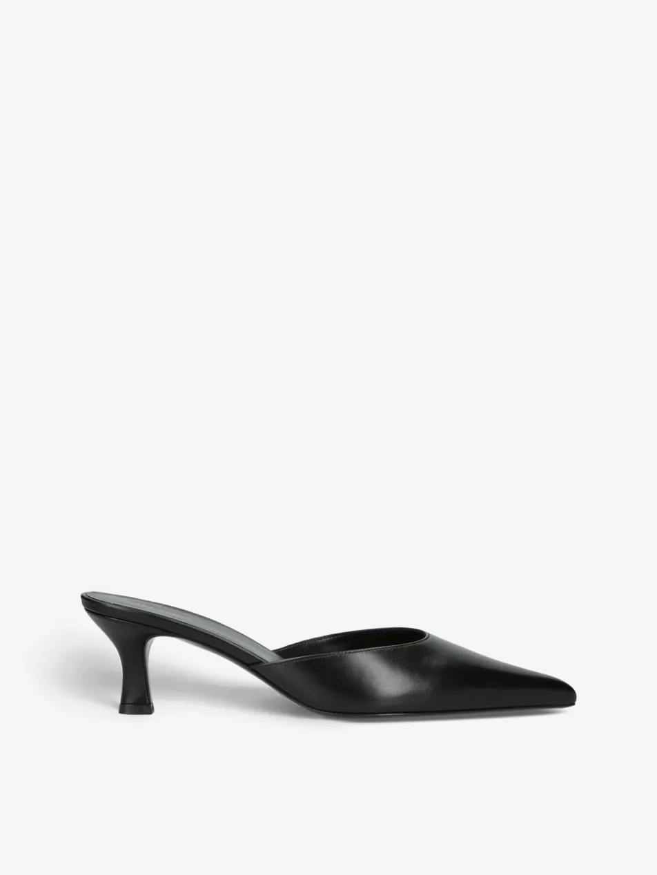 Closed toe, pointed toe, small kitten heel, contrast lining, branded insole